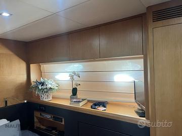 Ancora, Autogonfiabile, 6 Batterie, Camminamenti laterali in teak, Caricabatterie, Doccia esterna, Elica di poppa - stern thruster, Elica di prua - bow thruster, Fari fissi a poppa, Hard top, Impianto antincendio, Luci di cortesia, Luci subacquee, Pompa di sentina automatica, Pompa di sentina manuale, Pozzetto Teak, Presa 220V banchina, Salpa Ancore Elettrico, Scaletta da bagno, Tromba.