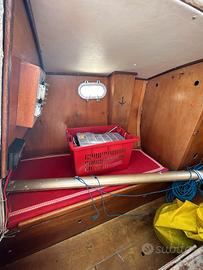 Barca in buono stato, completa di vele, motore fuoribordo 4 t 6 CV Mercury, doccia esterna con autoclave, impianto elettrico con pannello solare, dotazioni entro le 6 miglia, allestimento interno con 3 cuccette in open space.
