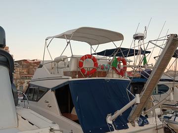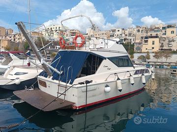 Imbarcazione del 1980, ma in ottime condizioni generali sia dei motori che dello scafo. Monta due motori entrobordo con linea d'asse Aifo 270 cv diesel cadauno, pacco batterie nuovo Agosto 2025, ecoscandaglio, GPS, pilota automatico, vhf, inverter, due serbatoi in acciaio per il gasolio per 1200 litri, un serbatoio in acciaio per acqua 250 litri, cucina 3 fornelli, due frigoriferi, ampia dinette con letto matrimoniale, cabina armatoriale con letto matrimoniale 3 posti letto, cabina con letto a castello, cabina marinaio a prua con bagno separato e lavandino, bagno con ampia doccia, boiler acqua calda, anpua cuscineria prendisole con poltrone a prua, tendalino sul fly, doccetta a prua e doccetta acqua calda a prua, due tavoli,aria condizionata, fornetto, luci cortesia blu, luci poppa blu ad imnersione su linea galleggiamento, ampia spiaggetta a prua, passerella amovibile, impianto antincendio automatico, Rina 2027., consum irrisori di 10/ 12 litri ora ad una velocità di 7/8 nodi. A Mqggio 2024 sono state scoppiate le linee d'asse e cambiati entrambi gli astucci pressatrecce. Vendesi per passaggio a categoria superiore. Visibile porto di Torre Annunziata. No perditempo.