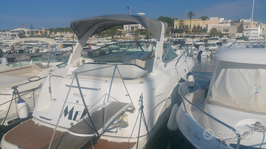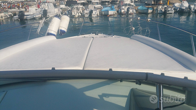 La barca attualmente è in rimessaggio al chiuso in un capannone in Salento.. Vendo barca a motore del luglio 2008 utilizzata per brevi tragitti costieri e in rada. Poche ore di navigazione. Motori (due) VOLVO PENTA GXI da 225 HP in perfetto stato di manutenzione ed utilizzo. Passerella elettrica. Luci di fonda. Elica di prua. Generatore Lombardini Marine da 6 kW. Interni in ciliegio. Forno a microonde, TV a cristalli liquidi, video lettore DVD, impianto stereo radio CD (galattico) Pioneer internamente che esternamente, piastra ad induzione, due frigoriferi con cella surgelati.
