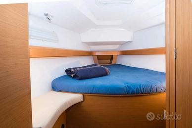 Jeanneau Sun odyssey La barca a vela Sun Odyssey è la soluzione ideale per una vacanza all’insegna del relax e del mare in Toscana. Può ospitare comodamente fino a 8 persone, grazie a 3 cabine doppie e a 2 posti letto aggiuntivi nella dinette. La biancheria da letto è inclusa e viene fornita al momento dell’imbarco. A bordo è presente un bagno completo di doccia. La cucina è completamente attrezzata e dispone di frigorifero, forno, fornelli, lavandino ed utensili da cucina, offrendo tutto il necessario per vivere l’esperienza in piena autonomia. È possibile noleggiare l’imbarcazione per una settimana intera oppure per periodi più brevi, da 2 a 6 giorni. Per ricevere un preventivo personalizzato, non esitate a contattarci. Il Charter Pack, obbligatorio, include tender, motore fuoribordo, pulizia finale, biancheria da letto, una bombola di gas e kit di benvenuto. Sono inoltre disponibili, su richiesta, servizi extra come il set di asciugamani, il SUP (Stand Up Paddle) e il parcheggio in porto. L’attrezzatura include plotter GPS, autopilota, bimini, stazione del vento, doccia esterna, boiler e VHF. Dispone anche di un sistema audio interno e esterno. Prezzi da verificare a seconda del periodo scelto. Per ricevere un preventivo personalizzato, non esitate a contattarci.