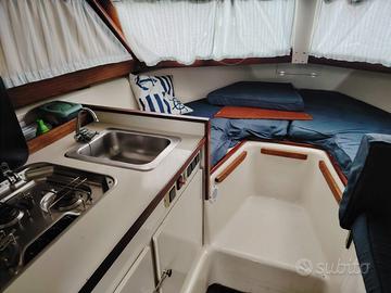 đ¤ Splendido Chris Craft 25 Express Cruiser â Pronto alla Boa! Vendo bellissimo Chris Craft 25 Express Cruiser, unâimbarcazione marina, solida e dagli spazi eccellenti, ideale sia per piacevoli crociere in famiglia che per le giornate di pesca. La barca è stata mantenuta con estrema cura, ha consumi ridottissimi ed è pronta per navigare. âď¸ SPECIFICHE TECNICHE E PRESTAZIONI: ⢠Dimensioni: Lunghezza 7,59 m | Larghezza 2,80 m ⢠Motore: Aifo 165 hp Turbo Diesel (Modello 8061, Anno 1990) â Entrobordo/Fuoribordo ⢠Ore di moto: Circa 700 (pochissime per questo motore!) ⢠VelocitĂ di crociera: 18 nodi ⢠Consumi: Solo 20 l/h a velocitĂ di crociera ⢠Serbatoi: Acqua dolce 100 L | Carburante 300 L (2x 150 L) đ ď¸ MANUTENZIONE RECENTE ⢠Elicanuove Dual Pro A5 ⢠Sostituzione cinghia đď¸ INTERNI E COMFORT: Disposizione degli spazi interni comoda e funzionale (totale 3 posti letto): ⢠Ampia cuccetta matrimoniale a prua (2 posti) ⢠Dinette trasformabile (2 posto letti ) ⢠Cucina attrezzata con frigorifero ⢠Bagno in locale separato dotato di doccia e boiler per l'acqua calda â ACCESSORI ED EQUIPAGGIAMENTO: ⢠Navigazione & ElettricitĂ : Radio VHF Icom, Flaps, Pannello solare (per un'ottima autonomia), Impianto 220V, Caricabatterie Quick, Luci di via. ⢠Coperta: Salpa ancora elettrico Lofrans da 1,5 Kw, Plancetta di poppa allungata con comoda scaletta da bagno, Ampi tendalini, Doccetta esterna. ⢠Extra per la pesca: Impianto acqua con pompa per vasca del vivo. đ BONUS INCLUSO NEL PREZZO: Insieme all'imbarcazione regalo Tender Eurovinil con motore fuoribordo Honda 2.3 hp e relative gruette per il sollevamento. Un pacchetto completo e pronto all'uso! Barca visionabile su appuntamento. Contattatemi per qualsiasi informazione.