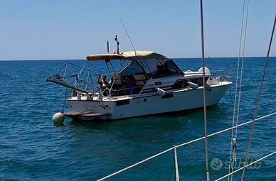 Sempre ben tenuta ,scafo in vetroresina del 1982 motori VM serie MR 704 LS del 2011 . Eco, GPS, pilota automatico, 2 VHF,5 pompe sentina di cui 2 automatiche, radio, TV colori , lascio tutte le dotazioni di bordo zinchi ,tagliandi , e revisione turbine fatte nel 2024.tendalino nuovo in sumbrela e tenda chiusura completa, prezzo trattabile, vendo per raggiunti miei limiti di età, ho 75 anni e non mi sento più di andare in barca da solo.