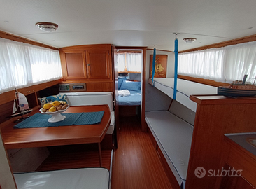 Interni spaziosi, dinette trasformabili, cabina a prua con cuccette a V, cucina attrezzata e bagno. Altezza interna comoda (circa 1,85 m), perfetta per crociere costiere o weekend a bordo.