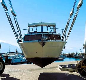 RIPRISTINATA 2025 INUTILIZZATA. PRONTA AL VARO. Visibile in cantiere. Vendo a malincuore. Ottime condizioni. 2x125cv AIFO 806 (6 cilindri), velocità max 14 nodi crociera 11/12 nodi consumi irrisori, abitabilità ineguagliata, ulteriori lavori non indicati per ragioni di spazio. Fornello 2 fuochi con piano in marmo, wc separato, cabina armatoriale separata rivestita in legno, divano trasformabile in 2 letti a castello, dinette trasformabile, tappezzeria interna rifatta, motori sbarcati, sentina, supporti motori, 2 serbatoi carburante acciaio inox, serbatoio acqua 200l, doccetta in ampia pedana posteriore, pacco 3 batterie 2025, pozzetto in vetroresina nuovo, legno esterno parzialmente rifatto, carena portata a zero 2025, revisionata e riverniciata compreso antivegetativa, tettuccio in vtr con faretti, impianto acque nere, 2 pompe di sentina, verricello Tigres, 50 mt di catena, ancora Bruce, illuminazione interna ed esterna led, cuscini tetto cabina nuovi, etc.