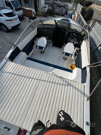 Vendo semi cabinati 7,80 in perfette condizioni tutto restaurato impianto elettrico nuovo , cuscineria nuova dentro e fuori , doccia esterna , 2 batterie una per i servizi una per il motore , stereo con casse boss , tendalino in acciaio , tendalino di chiusura , motore 5.7 v8 benzina 280 cv appena stato rifatto tutto , console con strumenti nuovi , ecoscandaglio con gps , spiagetta in teak , pavimento di dentro la cabina in teak ,sedili di guida e passeggero messi nuovi quest'anno .