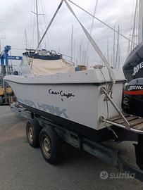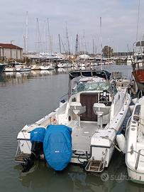 Fisherman per la pesca Barca Americana walkaround Chris Craft Sea Hawk 216 Anno 1988 Lunghezza 6,50 m Larghezza 2,44 m Trasporto max 8 persone Serbatoio carburante in acciaio 200 lt Serbatoio acqua 20 lt Disposizione interni: Cabina con 2 posti letto Descrizione Motore principale Mercury Optimax 200 cv 2 tempi elica in acciaio 4 pale Anno 2003 Ore moto 800 Consumi a velocità di crociera 24 nodi 33 l/h Tagliandi regolari Descrizione motore ausiliario Mercury 9.9 cv 4 tempi avviamento elettrico Anno 2004 Tagliandi regolari Accessori Manetta con doppi comandi per controllo motori a distanza 2 batterie e caricabatteria con attacco in banchina 3 pompe di sentina automatiche e manuali Vasca del vivo con pompa Vasca del pescato con maceratore Presa a mare per lavaggio con doccetta acqua salata e dolce Radio FM 5 porta canne su murata e 4 al riposo Luci di via 2 fari a led Tendalino con Roll Bar ripieghevole Tendalino copertura totale del pozzetto Salpa ancora elettrico Dotazioni entro le 12 miglia Strumentazione Ecoscandaglio FCV Furuno 585 con trasduttore Airmar P66 Plotter GPS Lorenz 8 Panoramic Lowrance Mark 4 senza cartografia Vendita compresa strumentazione euro 16.500,00 Sole se veramente interessati no a sognatori Formula vendita vista e piaciuta