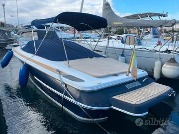 Motoscafo sportivo di lusso con design classico e finiture in teak. È progettato per gite veloci e sportive, con eleganza vintage, prestazioni moderne e wrapping personalizzato sulle murate e sulla plancetta che ne valorizzano l’estetica. DATI TECNICI Lunghezza scafo 5,74 m (max: 6,20 m) Larghezza 2,41 m Pescaggio 0,65 m Anno di Costruzione 2005 Velocità Massima 57 nodi Velocità di Crociera 28 nodi Dislocamento 1900 Kg COMBUSTIBILI E MOTORI N 1 Serbatoio INOX Capacità 130 litri Benzina Motore 1 x VOLVO PENTA 5.0 GXI 270 CV Ore di moto 498 IDRAULICI N 1 Serbatoio Polietilene Capacità 50 l Autoclave ELETTRICI Tensione 12V N 1 Batterie Carica Batterie totale 100 A DESCRIZIONE ARMAMENTI Ghiacciaia Bimini top Sedili girevoli Cuscineria pozzetto e poppa Tavolo teak rimovibile Segna passo in pozzetto Timone mogano Cagnaro DESCRIZIONE STRUMENTAZIONE VHF Bussola Stereo GPS portatile LAVORI ESEGUITI Sostituzione batteria 2025 Revisione ingranaggi piede 2024 Wrapping murate e plancetta 2023 Broker's commission 5% excluded Dati ritenuti corretti, ma non contrattuali. La presente non costituisce, in nessun caso, documento contrattuale. No si accettano permute ranieri saver mano marine solcio sessa gobbi rio eolo salpa joker boat, bat pirelli open day cruiser gozzo proteo giglio aifo Mercruiser intermare dc raffaelli cranchi