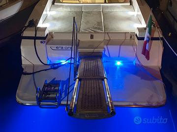 IMPIANTO ELETTRICO: Completamente revisionato 2019. Luci a LED (interni ed esterni bianche e blu), luci subacquee (blu), nuove (2019). 3 batterie (una nuova). Parallelo su consolle guida e in quadro pozzetto. Cavo presa 220 W. Pannello elettrico e comando generatore in dinette.