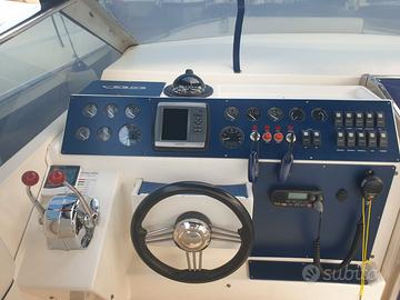 PANNELLO STRUMENTI: Sostituito completamente con aggiunta di contagiri/contaore VDO nuovi da CERBONE Components (2019). GPS chartplotter con ecoscandaglio (GARMIN). Bussola RIVIERA nuova (2019). Angolo di barra e controllo flaps su pannello. Leva comandi gas (MORSE STYLE) in acciaio inox