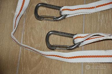 Perfetta cinghia di sicurezza con moschettoni che sopportano fino a 800 kg l'uno. Sono in acciaio Inox AISI 316L