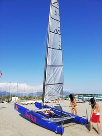 vendo catamarano classe a bimare con albero carbonio completamente rivisto con decalcomanie Red Bull. Randa challenger in ottimo stato, carrello da alaggio doppia barra accoppiatrice, stick telescopico. Sartiamo completamente rifatto nel 2022.