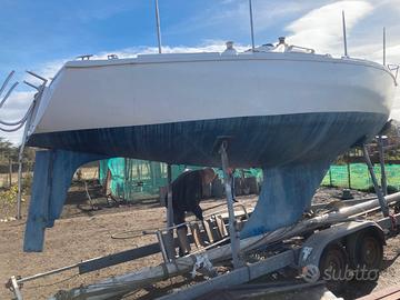 Barca datata (fine anni settanta) è stata riverniciata all'esterno e rifatta la carena con antivegetativa. Completa di albero, boma e tangone, dispone di randa, genoa e tormentina oltre a spinnaker. Lavori da fare: rizzare l'albero con controllo ed eventuale sostituzione di sartie e drizze, rivedere gli interni con rivestimento cuscineria e revisione delle parti in legno. Il carrello non è targato per la circolazione stradale e va eventualmente reimmatricolato, il motore è da tagliandare. La barca si trova a Trevignano Romano.