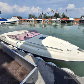 Colombo 28 Maitè ,anno 1998, SOLO LAGO DI GARDA, rimotorizzato con 2 Mercruiser 5.7 MPI ( iniezione multipoint ultima generazione) con 300cv x 2 , piedi alpha one,elica in acciao, solo 440 ore, MANETTE ELETTRONICHE, SENZA ANTIVEGETATIVA, ELICA DI PRUA, FULL TEAK,telo copertura Sumbrella nuovo, radio , pompa.sentina, eco Garmin,refitting cabina, condizioni da vetrina , sempre varo e alaggio mai rimasta in acqua , sempre in capannone, valuto permuta con auto sportiva .