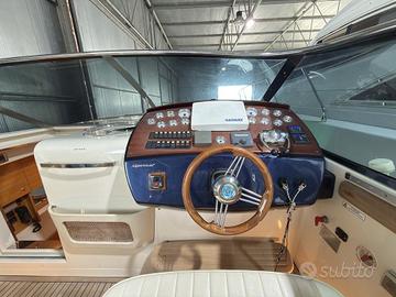 Comando motori elettronico, Contametri catena, Pilota automatico (Raymarine), Plotter con antenna GPS (Geonav 11), Radio VHF (Simrad).