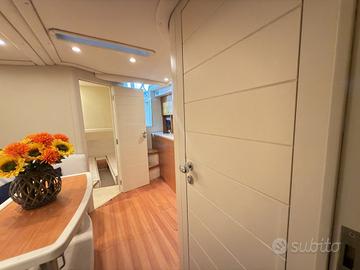 Autoclave, Batterie, Caricabatterie, Cavo corrente di banchina, Colorazione speciale (Fascia blu nelle fiancate), Doccia esterna, Elica di prua - bow thruster, Flap elettrici, Lavandino nel Pozzetto, Luci di cortesia, Passerella (a scomparsa), Pozzetto Teak, Presa 220V banchina, Salpa Ancore Elettrico.