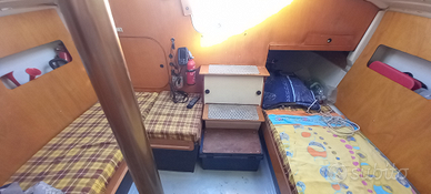 Comar Comet 801, motore Lombardini 12 cv entrobordo 700 ore moto perfetto. Fiocco e randa in ottime condizioni, gennaker con calza e manovre, pilota automatico Raymarine ST1000, 2 winch self-tailing a 2 velocità, ancora con catena e cima , wc marino elettrico e lavello a scomparsa, interni originali, 5 posti letto, comodo e ampio salottino interno con tavolino retrattile. GPS portatile, ecoscandaglio, serbatoio acqua in pvc, water alternativo manuale nuovo , carica batteria, binocoli e accessori vari. Trattabile