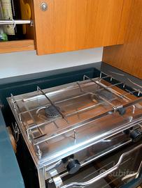 La barca dispone di due comode cabine (prua e poppa) cucina completamente equipaggiata, bagno con acqua calda e doccia.