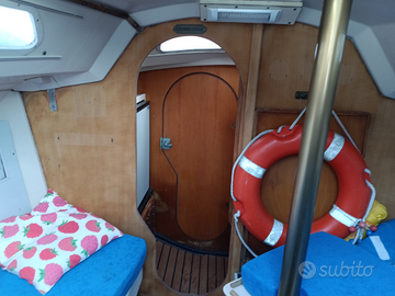 Gioco vela completo,rollafiocco, Easybag,plancia Poppa con scaletta,cuscineria interna completa,frigorifero,wc elettrico,cucina a scomparsa,motore entrobordo Nanni
