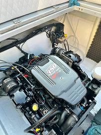 Questo EC27 è un autentico gioiello, prodotto in una tiratura limitatissima e dotato di marcature CE. Un motoscafo che offre il comfort delle imbarcazioni moderne con un'anima potente e sportiva: il suo cuore pulsante è un ruggente Mercury 350 MAG MPI da 305 Cv, con sole 386 ore di navigazione, abbinato a una trasmissione Bravo III con doppia elica in acciaio. Prestazioni? Planata in meno di 20 nodi e una velocità massima oltre 48 Kn. E per le crociere? A 27 nodi consuma solo 30 lt/h.
