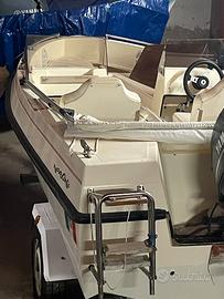 Modello Summer del cantiere italiano Nuova Concord, lunghezza 4,4 mt larga 1,9 mt omologata 5 persone. prendisole a prua con tavolino a scomparsa, completa di tendalino in alluminio 3 archi, doppio serbatoio benzina 30+30 lt con deviatore, impianto doccia, radio stereo bluetooth con 4 casse marine, scaletta con gradini in legno e plancetta posteriore, luci, motore Yamaha Autolube Jeol 25 cavalli con documenti, rimesso a nuovo presso officina Yamaha, cuscineria, ancora con cima e catena, carena perfetta. Tutto rimessato Yamaha, visibile a Castellammare di Stabia. Ottime condizioni, vendo solo per passaggio a categoria superiore. Possibilità di carrello omologato Plini&Gigliotti (costo a parte)
