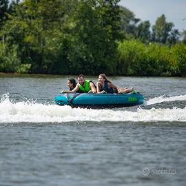Il Compound Towable 3P offre un divertimento versatile sull'acqua con una caratteristica unica: è possibile sgonfiare lo schienale e riporlo con la cerniera di chiusura per creare un traino a ponte piatto. Questa innovazione progettuale consente sia una guida confortevole sia un ponte piatto aerodinamico per diverse esperienze di traino. Costruito per durare e divertire, può ospitare fino a 3 persone e comprende 12 maniglie con protezioni per le nocche in neoprene, un connettore rapido per facilitare il traino e una camera di sicurezza con scarico dell'acqua. Costruito con una robusta copertura in nylon 840 denari e PVC 28 Gauge, questo traino è pronto per l'azione. Misura 106" x 84" x 29,5" (275 x 215 x 75 cm) quando è gonfio e viene fornito con una garanzia di 3 anni.