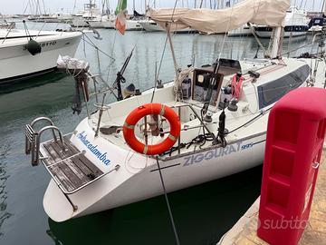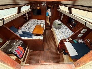 (albero e pescaggio maggiorati), anno 1982, motore Lombardini LDW 1303 M (cv. 27) con 70h di due set di vele complete con rollafiocco originale "Harken" completamente revisionato 2023 in occasione del rifacimento sartie; ,pilota automatico "Autohelm 4000", plancia poppa con scaletta risalita 2023, , salpancore nuovo 2023, con sostituzione completa batterie (n. 3 da 100A) e regolatore carica Victron 20A- 3 uscite nuovo, sostituite duebussole nuove dicembre 2023, rifa . 2024 aggiunta di navigatore Garmin 2025 sostituzione strumentazione Raymarine Sistema di vento, eco e log mn-100-2 con triducer (T111, T120, DST800), wireless Display wireless doppio multifunzione T111 Display analogico wireless multifunzione T112 Trasmettitore scafo T121 Triducer T910 con velocità, profondità e temperatura. 2025 Antivegetativa e luci di poppa. BARCA IN ACQUA E PRONTA ALLA BOA. visibile a Nettuno in posto barca 11.50x3.75