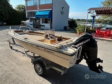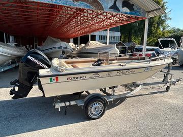 Centro Nautico S.Anna propone in vendita open Conero Delfino 450 motorizzato con Mercury 40 Efi del 2015, poche ore di moto solo lago, sempre rimessata in secca, scafo in ottime condizioni. Barca ideale sia per le gite in famiglia che per la pesca, comodo prendisole di prua, ben accessoriata per trascorrere piacevoli giornate a bordo. Lo scafo è completo dei seguenti accessori: Telo di copertura Tendalino parasole Cuscineria nuova Ecoscandaglio Garmin Serbatoio benzina Strumentazione Mercury Impianto elettrico con batteria scaletta di risalita Compreso nella vendita carrello stradale omologato Tecnitrail 650 del 2011 in ottime condizioni (da revisionare). Barca in pronta consegna visibile presso la nostra marina in Via Angera 5, Sesto Calende (Va) - Lago Maggiore, siamo aperti anche il sabato e domenica. Possibilità di posto barca in marina. NON si vendono separatamente barca e motore. Carrello non in vendita singolarmente. NON si accettano permute. Astenersi offerte assurde, saranno cestinate.