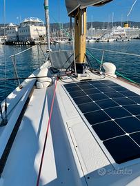 Impianto solare panello ETFE flessibile calpestabile, celle SunPower (USA) 110W con regolatore di carica Western Co WMARINE10 MPPT (Made in Italy), batteria servizi AGM 120Ah, batteria motore 95Ah 830A.