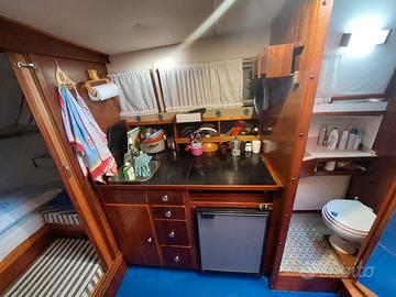 CORONET 27 omologata 10 persone Barca molto comoda e spaziosa, dalle linee un pochino retrò che ne avvantaggiano la abitabilità e spazio a bordo. Scafo molto stabile sia in navigazione che alla boa optima per stare fuori più giù giorni o per campeggio nautico tipo roulotte/casa estiva vacanza. Tetto rigido con tendalino Salpa ancore elettrico azionamento in consolle ed a prua. Tappezzeria interna ed esterna completa ed in ordine. Prendisole a prua amplio ad in piano, in più panca di poppa. WC elettrico interno con maceratore e cassa acque nere da 80L Serbatoio alimentazione da 300L Serbatoio acqua 200L Cucina interna a due fuochi con bombola esterna per maggior sicurezza, piano di copertura fornelli per coprire quando non si usano ed avere un piano unico. Frigorifero molto capiente Lavandino cucina, lavandino bagno, doccetta in bagno, doccetta di poppa tutti serviti da autoclave Ventilatori interni sentina per ventilazione corretta motori, due pompe di sentina nei gavoni motori azionabili sia manualmente che con automatico diretto. N° 4 batterie da 100 amp l’una 2 per avviamenti e 2 dedicate ai servizi, con possibilità di usufruire del parallelo con stacca batterie Il tutto tenuto sempre sotto carica e controllo da pannelli solari da 380w con ripartitore e parallelatore. Caricabatterie 220v Ecoscandaglio Luci interne ed esterne e di navigazione in ordine. Dotazioni in regola per la navigazione. Barca non immatricolata. La barca viene venduta senza motori e quadri strumenti. Volendo c’è la possibilità di fornire 2 motori volvo penta 175cv e 2 piedi poppieri. La barca può essere dotata di motori diesel o benzina. Prezzo 7000 trattabili per lo scafo Prezzo motori 10.000 trattabili Prendendo tutto assieme ci si può accordare Rimaniamo a disposizione per rogni tipo di info e chiarimenti sulla barca ad accessori Gianfranco 3487076240 Luca 3386183611 Saluti