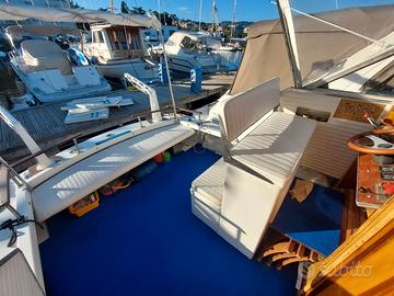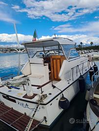CORONET 27 in vendita omologata 10 persone Barca molto comoda e spaziosa, dalle linee un pochino retrò che ne avvantaggiano la abitabilità e spazio a bordo. Scafo molto stabile sia in navigazione che alla boa optima per stare fuori più giù giorni o per campeggio nautico tipo roulotte/casa estiva vacanza Salpa ancore elettrico azionamento in consolle ed a prua. Tappezzeria interna ed esterna completa ed in ordine. Prendisole a prua amplio ad in piano, in più panca di poppa. WC elettrico interno con maceratore e cassa acque nere da 80L Serbatoio alimentazione da 300L Serbatoio acqua 200L Cucina interna a due fuochi con bombola esterna per maggior sicurezza, piano di copertura fornelli per coprire quando non si usano ed avere un piano unico. Frigorifero molto capiente Lavandino cucina, lavandino bagno, doccetta in bagno, doccetta di poppa tutti serviti da autoclave Ventilatori interni sentina per ventilazione corretta motori, due pompe di sentina nei gavoni motori azionabili sia manualmente che con automatico diretto. N° 4 batterie da 100 amp l’una 2 per avviamenti e 2 dedicate ai servizi, con possibilità di usufruire del parallelo con stacca batterie Il tutto tenuto sempre sotto carica e controllo da pannelli solari da 380w con ripartitore e parallelatore. Ecoscandaglio Luci interne ed esterne e di navigazione in ordine. Dotazioni in regola per la navigazione. Barca non immatricolata. La barca viene venduta senza motori e quadri strumenti. Volendo c’è la possibilità di fornire 2 motori volvo penta 175cv e 2 piedi poppieri. La barca può essere dotata diesel e benzina. Prezzo solo scafo 7000 euro trattabili Prezzo motori 10.000 trattabili Pacchetto intero ci si accorda con una chiacchierata seria. Rimaniamo a disposizione per rogni tipo di info e chiarimenti e curiosità Gianfranco 3487076240 Luca 3386183611 Grazie saluti