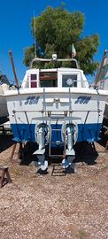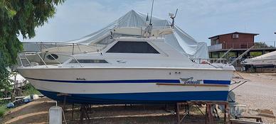 Vendo barca Coronet 24 Cab 7,30 m. anno 1987, ottima per campeggio nautico pesca e passeggiate con la famiglia prezzo trattabile .·cucinotto con frigorifero, doccia esterna, bagno separato, 4 posti letto (2 in dinette) tv, zattera autogonfiabile da fare il tagliando di controllo, gps mv marine e Ecoscandaglio Striker 5 anche questo con gps bussola, Tendalino 4 porta canne, due motori volvo penta 250A da 146 Cv a motore 868 e 845 ore a motore distribuzione fatta cambio olio e filtri fatto, sono a carburatori benzina rigenerati con appositi kit a giugno 2025, un motore necessita di pulizia dello scarico, piedi sempre 250 con elica singola rifatti piedi e cuffie ed ingranaggi interni, motori funzionanti , fondo e piedi fatti, la barca e fuori dall'acqua e visionabile a Fiumicino.