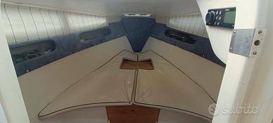 Con dispiacere causa il poco utilizzo vendesi COVERLINE 640 Cabin anno 2004 lunghezza 6,50 m. larghezza 2,50 m. cabina con 4 posti letto, categoria b, portata 8 persone, peso a secco 900 Kg. accessoriata con Garmin Echomap UHD2 72 CV con cartografia e trasduttore, idroguida, salpancora elettrico, lavello, tavolino ripiegabile, doccetta, pompa sentina elettrica, serbatoio acqua 40 lt. wc chimico, supporto con aggancio rimovibile motore ausiliario, attacco elettrico a banchina con caricabatterie nuovo, 2 batterie 100 ampere, stereo bluetooth usb, serbatoio benzina 120 lt. tappezzeria in buono stato, cuscinoni prendisole, copertura invernale e campeggio nautico, motore Mercury F 90 ELPT 4t anno 2004 in perfette condizioni, cinghia e tendicinghia nuovi, ormeggiata a Lignano con posto barca pagato