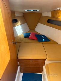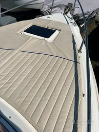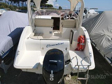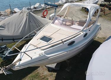 Barca Coverline Cabin 640 portata 8 persone, categoria B , anno 2005 unico proprietario sempre fuori acqua mai fatto trattamento anti vegetativo. Salpa ancora elettrico, prendi sole di prua con cuscini, cabina con 3 posti letto per adulti (4 se si considera famiglia con 2 bambini) wc con porta e oblò apribile, (il wc ha sia lo scarico in mare che cisterna di raccolta) doppia cisterna carburante 90 e 65 litri con apposito devio per utilizzare uno o l'altro, cisterna acqua con doccia, cucinotto e lavello sotto panca passeggero, frigo, doppie batterie nuove, stacca batterie con devio per farle andare entrambi o separate, gps eco, Idroguida, dotazioni al completo. Motore Mercury 150 cavalli anno 2024 con 29 ore di navigazione e ancora 4 anni di garanzia ufficiale Mercury.