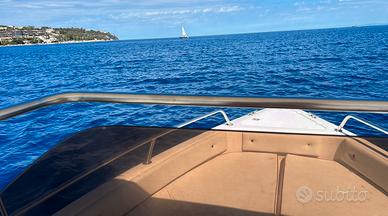 Imbarcazione autosvuotante molto rifinita con ampi gavoni, spaziosi prendisole, divano poppiero con tendalino parasole a scomparsa, posto guida confortevole per guida seduti ed in piedi, comoda scaletta bagno. Il natante è dotato di un comodo prendisole di prua fornito di cuscini.