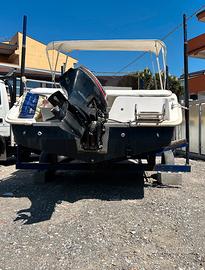 Impianto stereo bluetooth, gestibile con telecomando, con casse da 280w, accendisigari e attacco usb. Doppiofondo con pompa di sentina automatica, serbatoio carburante interno in acciaio, rifornimento carburante esterno. La barca è dotata di doccetta elettrica con serbatoio acqua dolce pompa della benzina elettrica e doppia batteria da 80 ampere ciascuno. Ecoscandaglio, quadro dei comandi, luci di via, luci di cortesia inferne, doppia ancora, mezzo marinaio e dotazioni di bordo. Tavolino in legno con piede in alluminio. La cuscineria è stata rifatta la scorsa stagione. Motore Mercury 40/70 4 tempi, tagliandato a luglio 2024, affidabile e dai consumi irrisori. Si guida senza patente. Antivegetativo applicato sul fondo a giugno 2024. Attualmente la barca è rimessata sul carrello. Assicurazione pagata fino a giugno 2025.