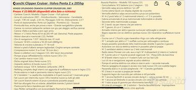 Vendo Cranchi clipper cruiser perfetto ormeggiato a Piombino Marina di Cagliana Motori Volvo penta Benzina 2 x205 XV