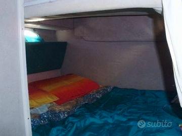Vendo Cranchi Clipper 8 metri del 1993 con plancetta VTR allungata comodissima per appoggio tender. Bagno e fare doccia. Motori Volvo Penta 2 x 205 CV (6cilindri) Benzina. Boiler acqua calda, Inverter 220volt. 160 Lt. acqua dolce. 300 lt. carb. Rimessata tutti gli anni. 2+2 posti letto. Bagno separato con WC nautico, Cucina 2 Fuochi e lavello, Frigo, Stereo, TV, GPS con ECOSCANDAGLIO A COLORI Lowrance 7". Pannello fotovoltaico con regolatore, 2 batterie 100A, predisposto per terza batteria. Caricabatterie, Impianto 220V. Telo invernale e tenda casetta estiva. Prezzo €16000