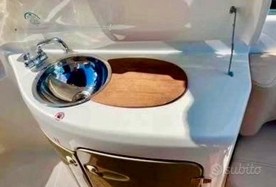 Capacità persone:8. Colore blu.Serbatoio carburante 325lt,serbatoio acqua 80lt. Posti letto:2. Ampio prendisole a prua e a poppa,cabina con cuccetta,Wc marino,tendalini blu, cuscinetta completa in ottimo stato, doccetta esterna, lavabo in pozzetto, radio stereo, plancetta di poppa con scaletta a scomparsa.L'imbarcazione è visibile a Jesolo (VE)