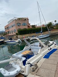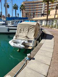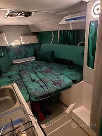 Natante - Motorizzazione 2 x 150 cv benz. Volvo Penta 450 ore. Barca ricoverata in garage per molti anni Consumi crociera 22 nodi 30 lt/h - Velocità max 33 nodi. Lunghezza Ft. 8 x 2,45 - comodissima con 5 posti letto (2+3) -Serb. benzina da 300 litri - Serb. acqua 150 litri Alcuni lavori aprile 2024: Sbarcati motori e piedi, revisionati e tagliandati compresi motorini d'avviamento, alternatori, carburatori, trim e sostituite pompe benzina, frigo. Insonorizzazione Sala macchine. Interni dinette e cabina, Cuscineria inter. ed ester., plancetta di poppa, nuove