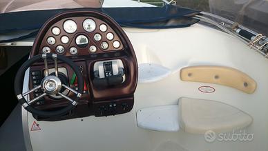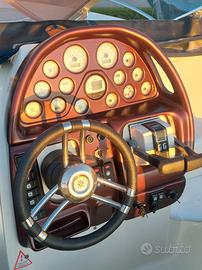 CONSOLE: doppio comando trim, indicatori (giri motori x2, computer dual data, indicatore trim x2, indicatore temperatura x2, indicatore pressione olio x2, indicatore alternatore x2, indicatore errori motore x2, indicatore carburante), prese USB, comando chiesuola doppia manetta meccanica, gruppo chiave ( 3 chiavi ), 2 sedili di guida regolabili e pieghevoli