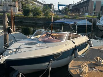 Unico motore Volvo 320 cv benzina con raiser e collettori sostituiti , fattura concessionaria volvo e pompa acqua nuova, montato bottazzo paracolpi plancetta posteriore, riverniciate fiancate blu e tiemo copribarca nuovo.