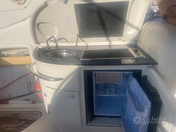 DESCRIZIONE o Anno: 2005 o Cantiere: Cranchi Yachts o Lunghezza f.t.: 12,99 m o Larghezza: 3,50 m o Pescaggio: ~1,00 - 1,10 m o Materiale scafo: Vetroresina o Dislocamento: ~8.910 Kg o Serbatoio Carburante: ~780-800 litri o Serbatoio Acqua: ~120-150 litri o Trasmissione: Entrofuoribordo (DPH) o Persone: Portata max ~10 ALLESTIMENTO INTERN/ESTERNO o Cabine: 2 (cabina open space a prua trasformabile, cabina separata a poppa) o Posti letto: 4 o Bagni: 1 con doccia o Pozzetto: Ampio prendisole di poppa, garage per tender, dinette con tavolo, sedute di guida e copilota MOTORI o Modello: 2 x Volvo Penta D6 - 350 hp DIESEL o Anno: 2005 o Ore: 790 STANDARDS o Salpa ancore elettrico da 700watt o Fornello con 2 fuochi a gas o Lavello in acciaio o Forno microonde o Frigorifero 65L in cucina o Mobile Bar o WC marino elettrico o Doccia o Mobile bagno con lavello o Mobili in ciliegio americano o Piano di lavoro in Corian o Impianto 2 batterie o Presa banchina 32 Amp/230 Volt o Caricabatterie automatico 30 Amp o Prese di corrente o Serbatoio Acqua 150L o Autoclave o Boiler elettrico da 25 lt OPTIONALS o Cappottina sole o Cuscino prendisole di prua o VHF o GPS Chartplotter o Radar o Pilota automatico o Computer Volvo Penta EVC o Telecomando Verricello o Frigorifero 50l. pozzetto o Passerella Idraulica a scomparsa con telecomando o Impianto microaspirazione sentina o Elica di prua 3KW o Kit luci prua/poppa MOTORI completamente revisionati 2026 CUSCINERIA NUOVA 2026