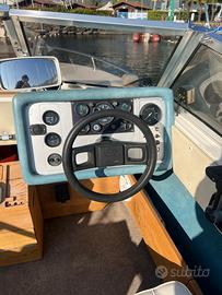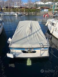 Vendo Cranchi Hobby 190, motorizzato Volvo penta aq200d 200cv 5.0L di cilindrata con 532 ore. Il natante si presenta in ottime condizioni con un recente tagliando completo al motore e sostituzione del motorino d'avviamento. La cuscineria è in ottime condizioni con la possibilità di abbassare i sedili e ricavare 2 lettini prendisole molto più vivibile di barche anche più grandi. Scafo molto bello e in ottime condizioni senza segni di botte o graffi,fatto per navigare anche con onde più comodo di motoscafi come Tullio Abbate che hanno scafi più sportivi. La barca ha una dotazione completa di salvagenti, cime, cassette primo soccorso , radio , mezzo marinaio ecc.. pronta da utilizzare subito. Viene venduta senza posto barca. Eventualmente si può avere il carrello e posto barca a parte con sovrapprezzo.