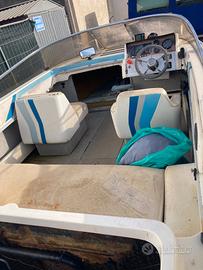 Barca del 1989 con motore tolto e rotto e senza piede. scafo in vetroresina in buone condizioni ( non entra acqua)