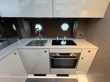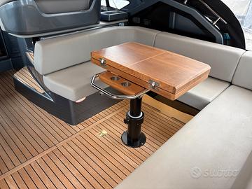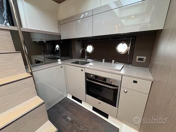 Ancora (Ultramarine 21 kg), Camminamenti laterali in teak, Caricabatterie, Doccia poppa e prua, Elica di prua - bow thruster (con estintore automatico), Garage per tender (apertura a comando elettrico alloggio tender mt 2), Hard top (Verniciatura Hard Top+ Soft top in tela con colore alternativo allo standard), Passerella idraulica a scomparsa, Pozzetto Teak, Presa 220V banchina, Tavolo pozzetto (trasformabile in prendisole incluso cuscino), plancetta idraulica sali/scendi, gruppo elettrogeno maggiorato 8 kw, gruppo aria condizionata tropicale da 30.000 BTU con 3 zone indipendenti in cabina, gruppo aria maggiorato esterno nel pozzetto da 16.000 BTU.