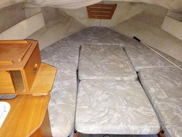 Accessori: Cuscineria di prua, Serbatoio carburante, Serbaoio Acqua, doccia esterna, Tendalino parasole, RollBar, luci di navigazione, Corrimano in acciaio, plancetta di poppa, scaletta bagno, tromba elettrica, bussola, monoleva ad incasso laterale