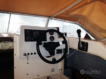 Nei suoi 5,80 Mt di lunghezza, questa barca si offre come un comodo "camper" del mare, permettendovi di poter usufruire di una comoda cabina a prua, guida centrale, ed un bel prendisole a poppa, la plancetta di poppa con scaletta di risalita, il tendalino parasole