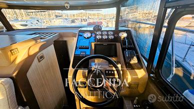 T36 Crossover full optional pari al nuovo con interni immacolati. In pronta consegna e disponibile per la prova. Categoria di progettazione B 12 persone day, 4 posti letto. VIDEO https://youtu.be/qUGot9o-ga0 Lunghezza scafo 9,96 metri (max: 11,85 metri) Larghezza 3,49 metri Anno di Costruzione 2018 Velocità Massima 30 nodi Velocità di Crociera 25 nodi Dislocamento 8500 Kg Pescaggio 0,79 metri N° Serbatoi 1 Revisione Motori regolare Capacità Serbatoi 600 litri Tipo Carburante diesel Motori Volvo Penta D4 2 x 260 HP Ore di moto 200 Trasmissione Entro fuori bordo Scafo Tuga VTR Coperta VTR E teak Serbatoi Acqua 1 x 190 litri Tipo Boiler elettrico Tensione 12V, 220V Generatore 5 Kw N° Batterie 3 Carica Batterie SI Inverter SI Autoclave: SI Cabine: versione con n.2 cabine + n.2 bagni Joystick + Cruise control + Single lever control + Trip Computer + Power trim assistance Pilota Automatico Raymarine Timoneria idraulica e comandi motore elettronici Correttore d'assetto "Automatic List" Verricello elettrico 800 Watt Elica prua con estintore automatico Easy connect Volvo Penta GPS/chartplotter + Radar a colori Raymarine display 9" Multistrumento DTS (temperatura-profondità-velocità) integrato nella strumentazione della plancia Allarme acustico/luminoso per acqua in sentina Bussola magnetica Correttore assetto Humphree versione base + Automatic Trim Control Radio Fusion Barre portatutto installate sulla sovrastruttura. kit base con binari e barre thule. Generatore 5 kw Luci prua Oscuranti parabrezza frontali e laterali Parabordi e copriparabordi (n°6 x) Portaparabordi n.6 Acqua: impianto distribuzione direttamente dalla banchina Ancora Bruce 15 Kg Catena 50 m - 8 mm Batterie motori/servizi n°3 Caricabatterie automatico 35 Ah 3 uscite Boiler elettrico l 25 Coperta antifiamma Cuscino prendisole a prua + portaoggetti + copertura Estintori:n°2 automatici nel vano motori +n°1 manuale pozzetto Mezzo marinaio Pompa autoclave Presa corrente banchina 32 Ah con cavo di collegamento