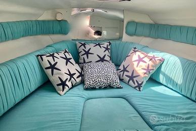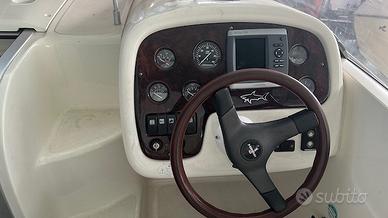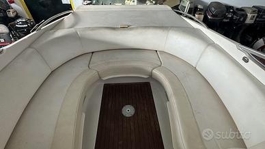 Superaccessoriata: Ampia Plancetta di poppa. delfiniera a prua - 2 oblò a murata - Parabrezza con apertura centrale per accedere a prendisole di prua - Verricello elettrico con Ancora e catena, Autoclave, Batterie, Doccia esterna, Pompa di sentina automatica, Pompa di sentina elettrica, Pompa di sentina manuale, Scaletta da bagno, Tavolo pozzetto, Tromba, Doccia a poppa + lavello nel pozzetto - Frigorifero interno - Stereo con due altoparlanti in cabina - Vhf - Bussola - quadro di alimentazione servizi con protezioni termiche - prese corrente 220V in cabina - Ecoscandaglio - Luci di navigazione - Tavolo nel pozzetto - Cuscineria prendisole nel pozzetto/poppa - prolunga letto prendisole pozzetto, Tendalino parasole - Telo copri scafo.